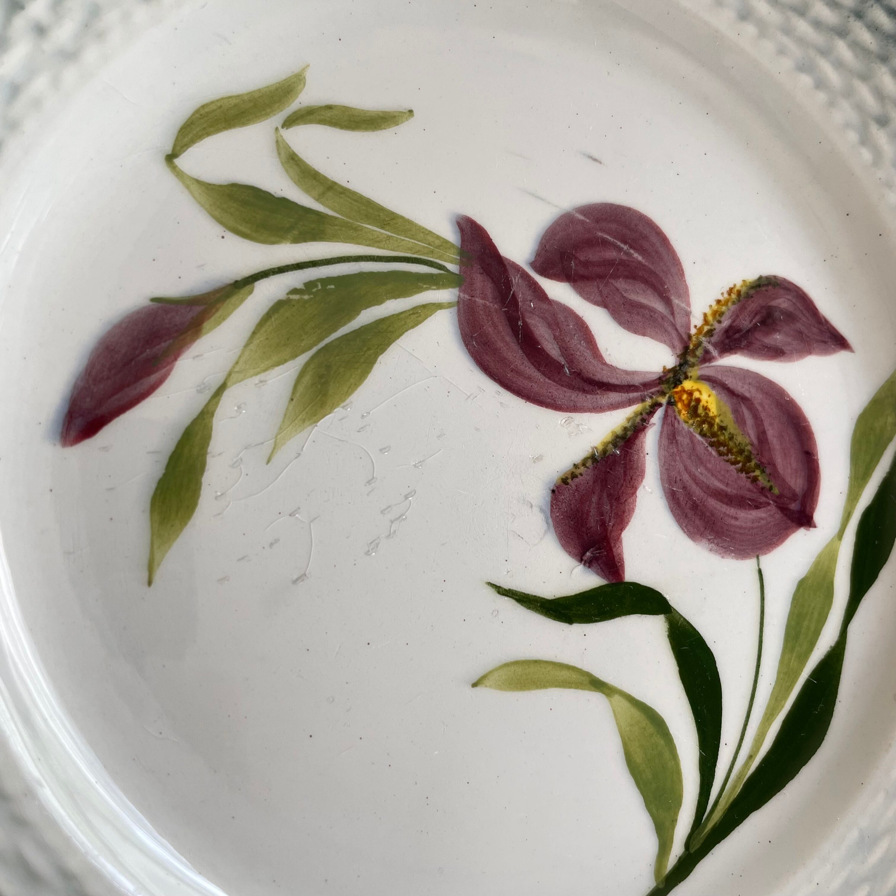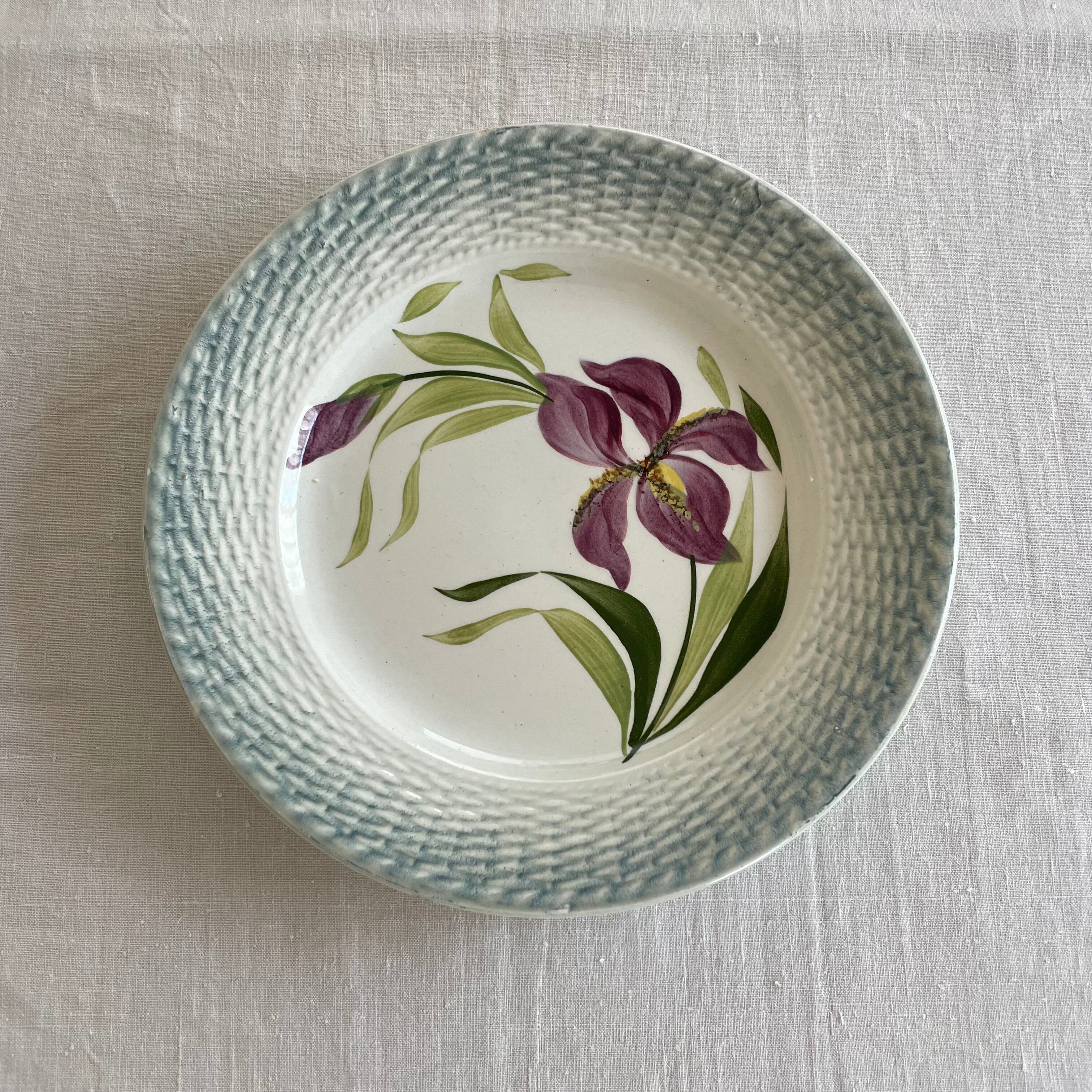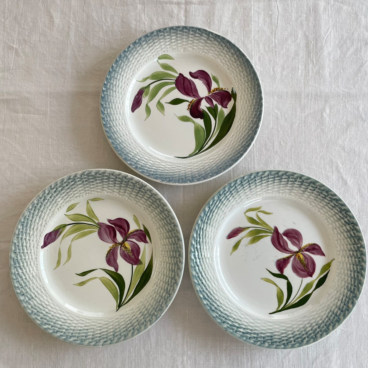 アイリスの絵柄に、縁はパニエ模様のデザートプレート3枚set。