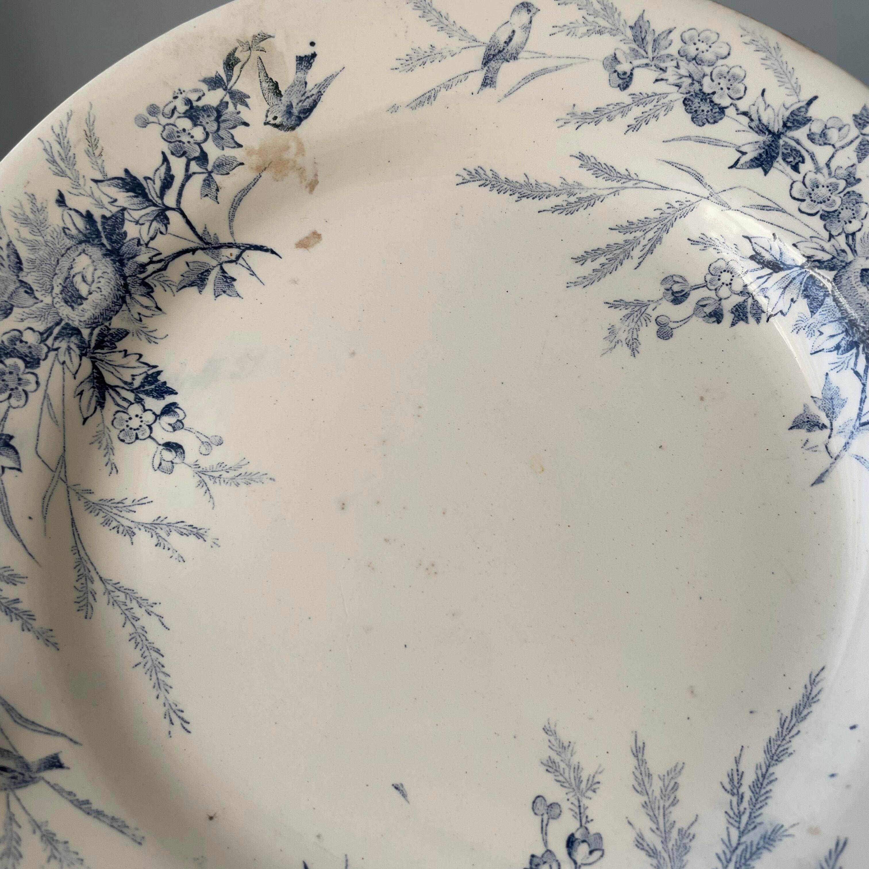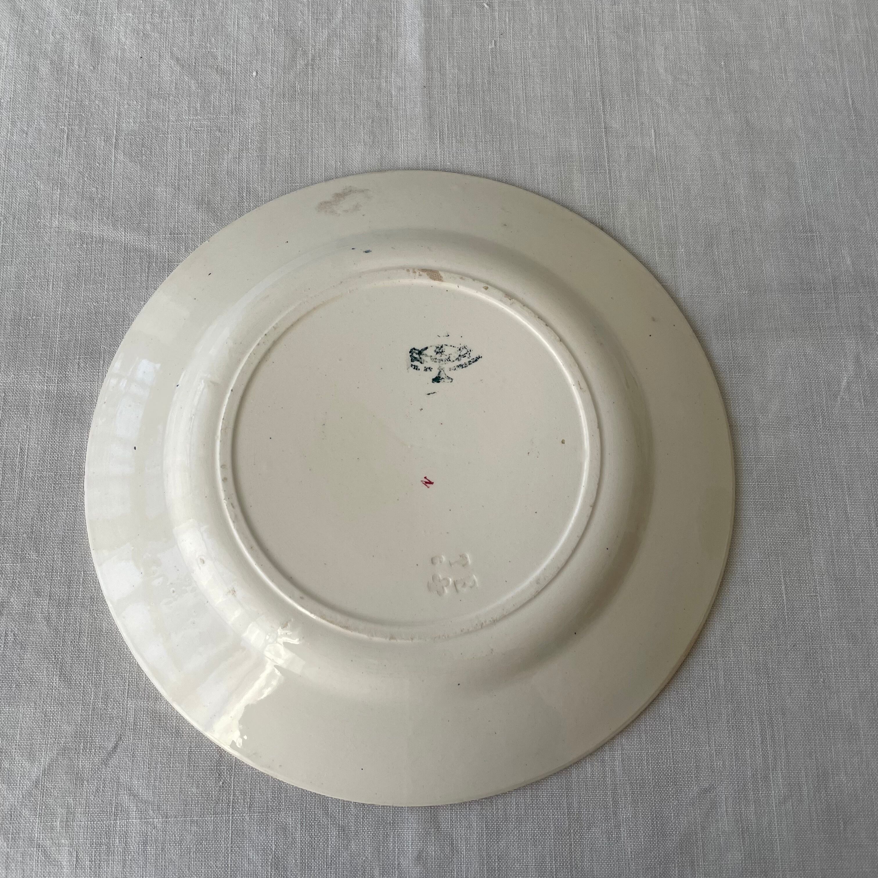 釉薬のムラで少し素地があらわになったままの箇所が茶色っぽくなっている部分があるのと、縁が淡く染まっている箇所、小さなシミがあります。