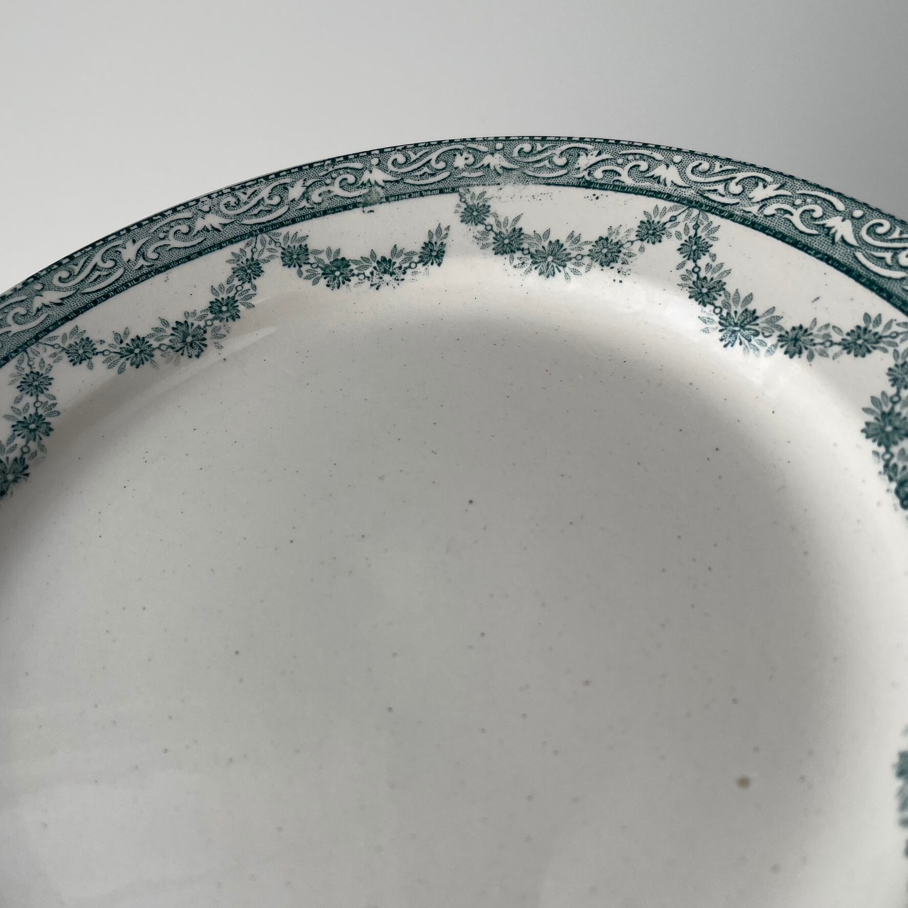 明るい白地にややグリーンがかったブルーのガーランド模様。