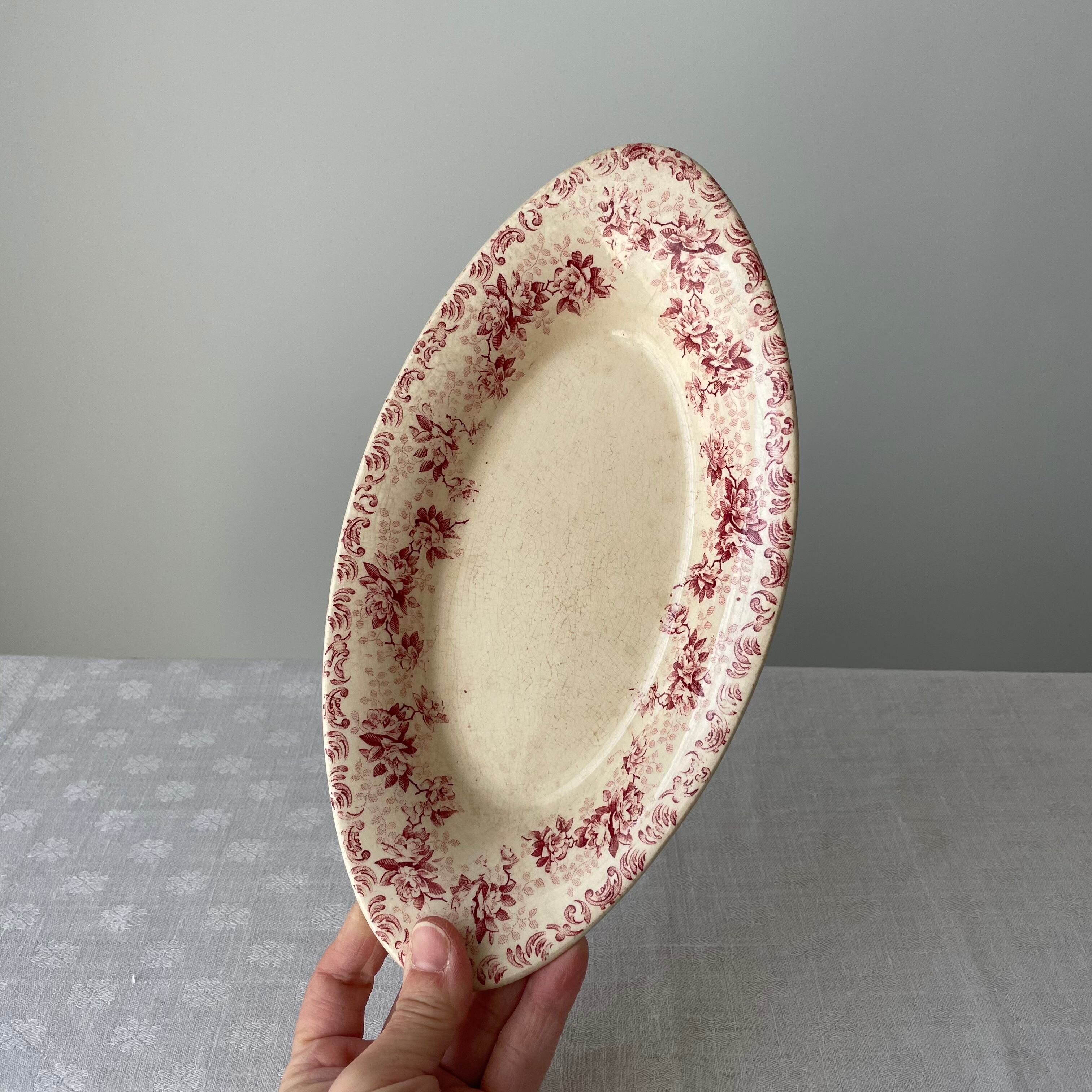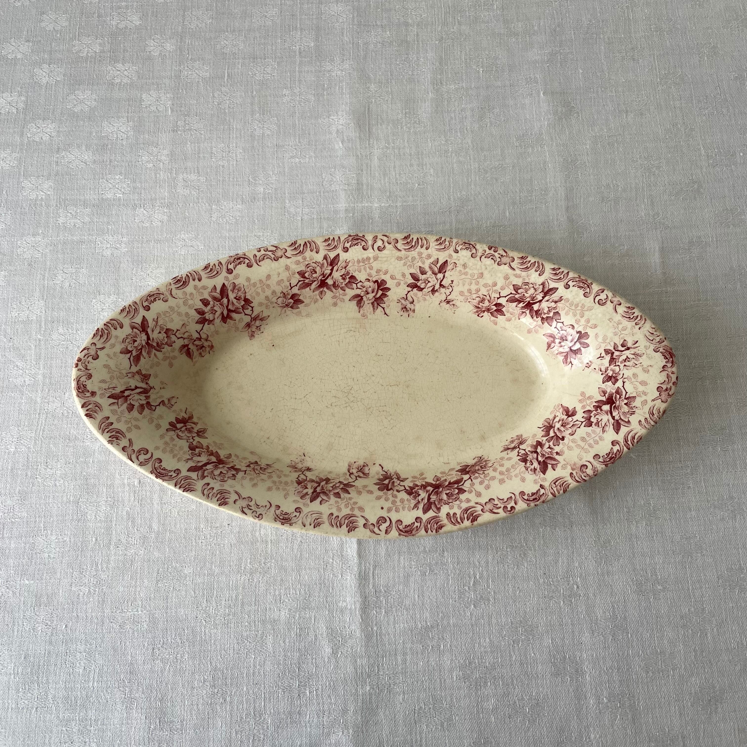 クリーム地に落ち着いた赤色のばら模様が華やかでかわいらしい雰囲気です。