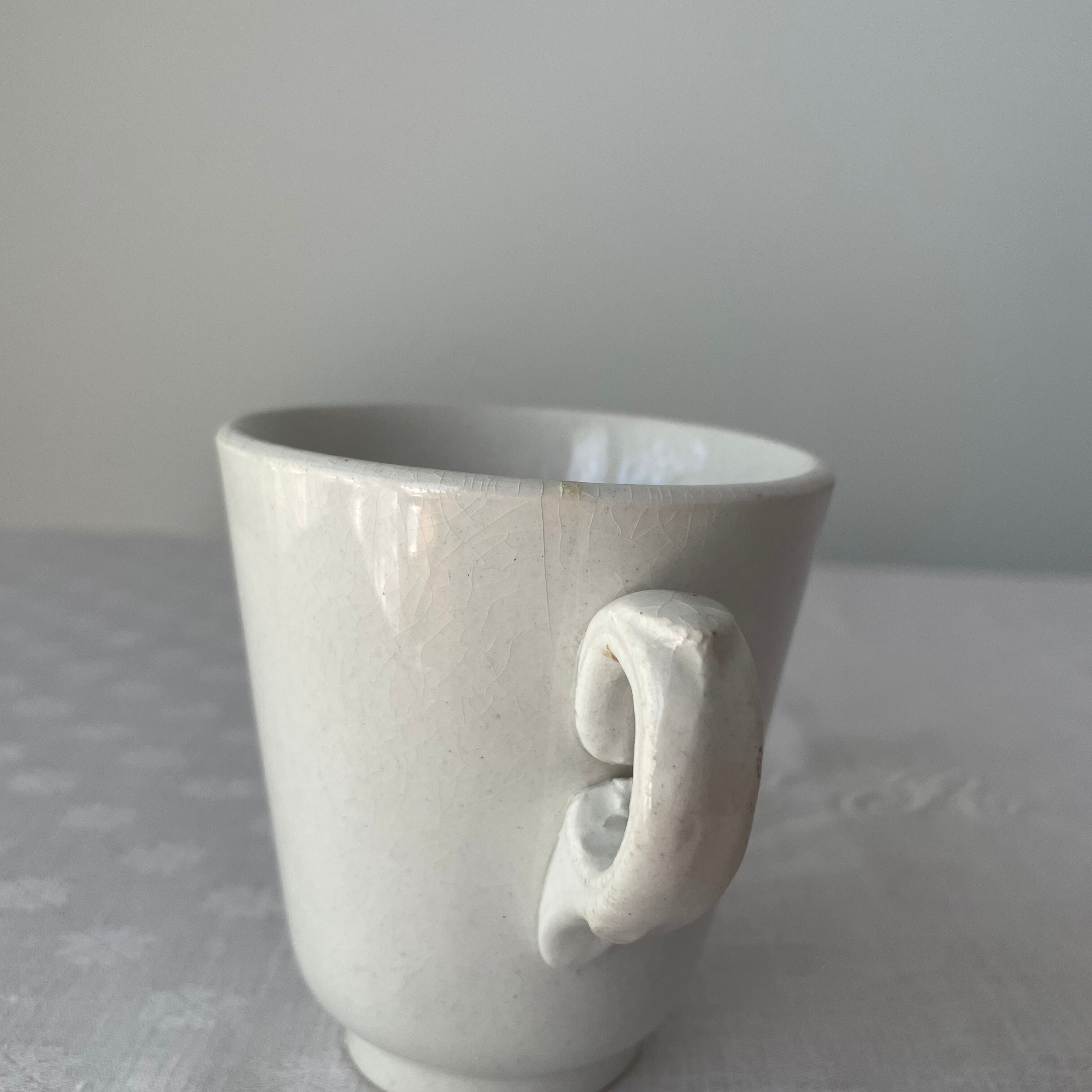 持ち手のささやかな装飾は持ちやすさも担っているようで、指を入れた時の収まりが良く、重さのあるカップを安心して持てるようにとの工夫を感じます。